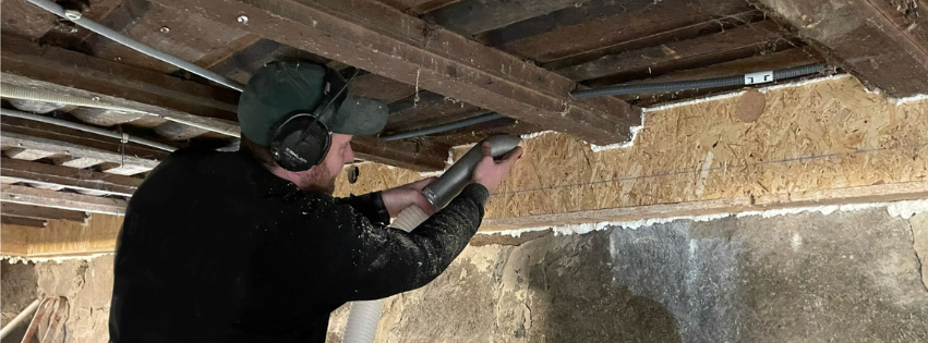 Innblåst trefiber er en fleksibel løsning som blåses inn i vegger, tak og etasjeskillere gjennom små hull. På den måten kan man etterisolere uten å rive eller åpne hele konstruksjonen. Dette gjør arbeidet raskt, rimelig og lite inngripende – perfekt for boliger som er i bruk.